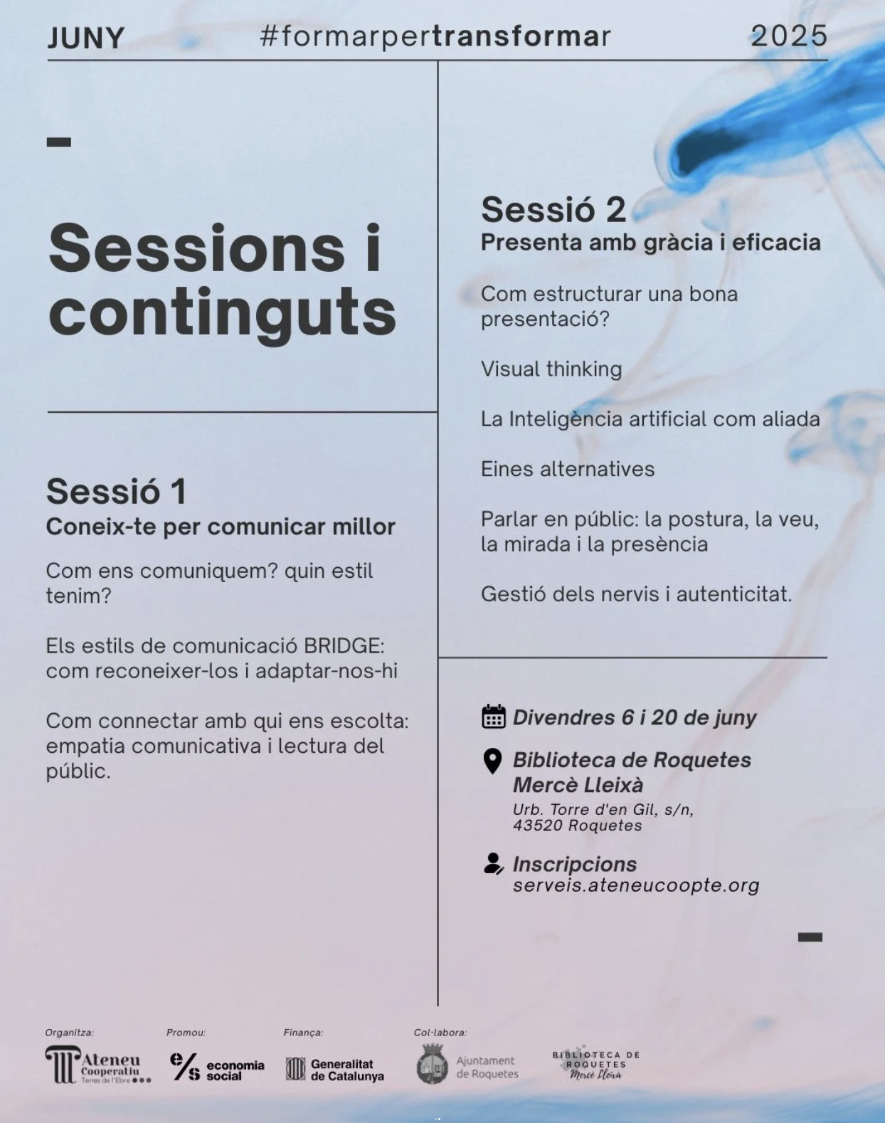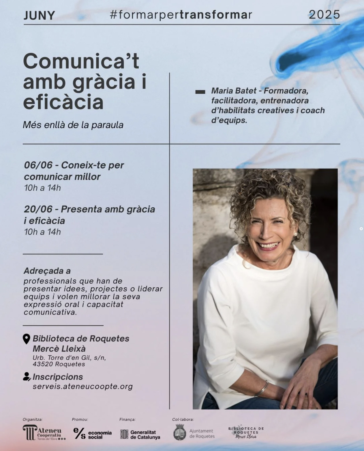 Formació ‘Presenta amb gràcia i eficàcia’, amb Maria Batet Screenshot Data 20 juny 2025 Caducat! Hora 10:00