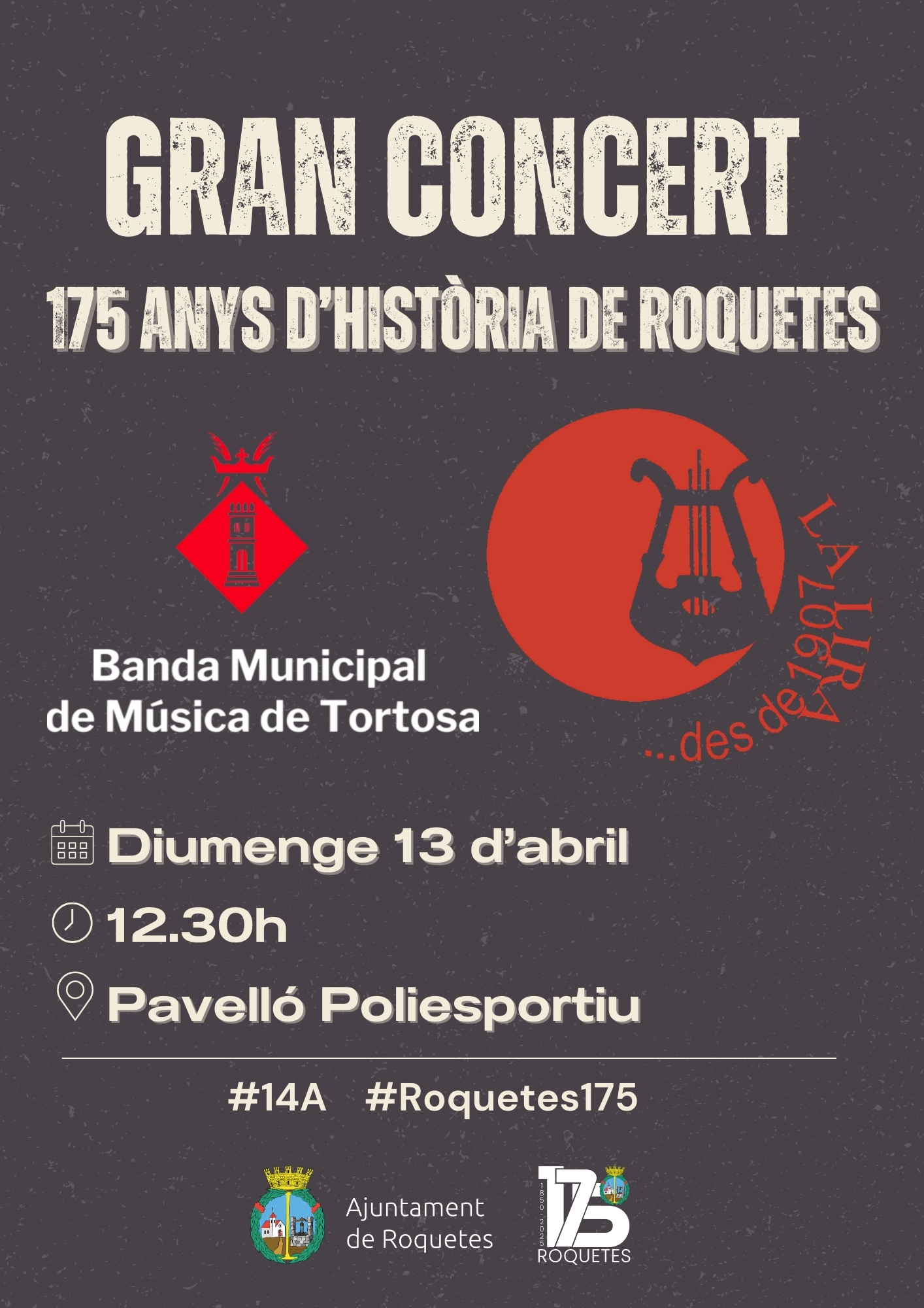Gran concert de bandes, amb La Lira Roquetense i la Banda Municipal de Tortosa Data 13 abr. 2025 Caducat! Hora 12:30
