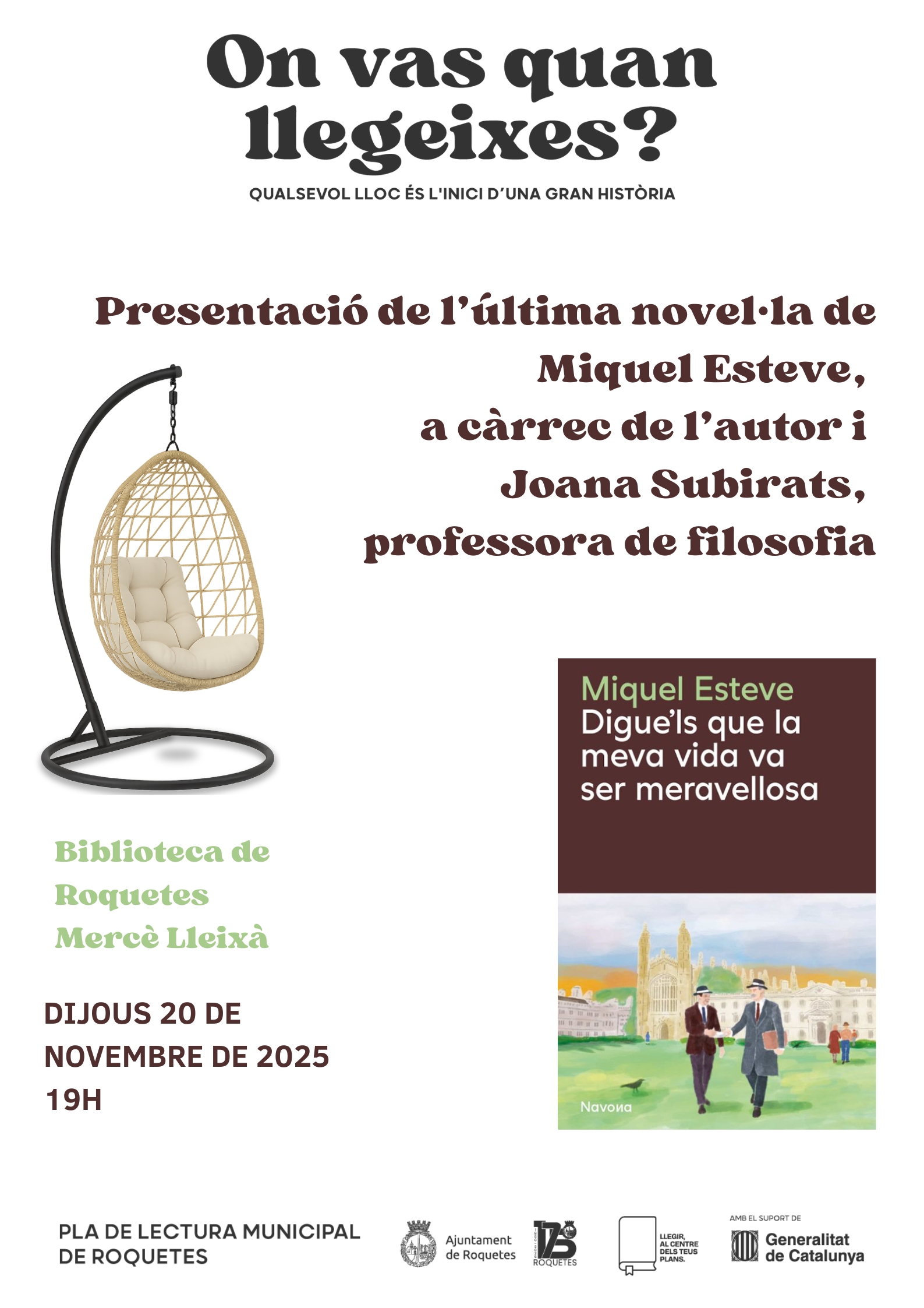 Presentació del llibre ‘Digue’ls que la meva vida va ser meravellosa’, de Miquel Esteve Data 20 nov. 2025 Hora 19:00