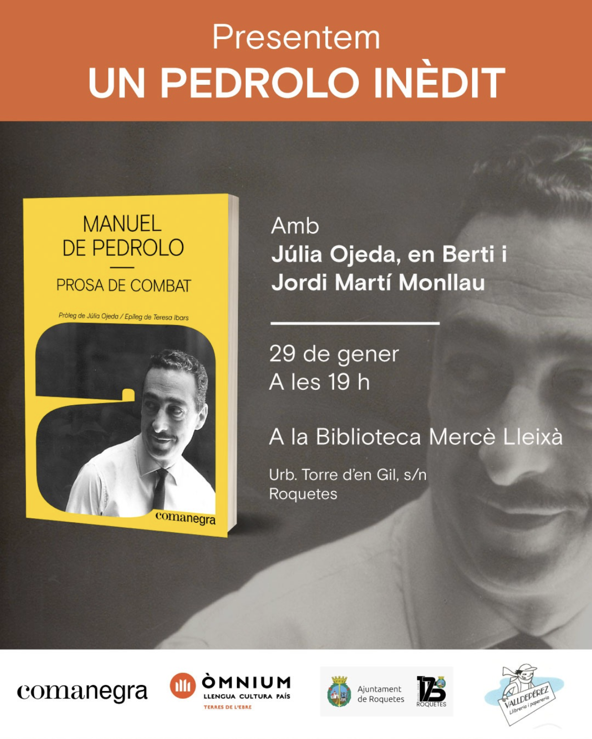 Presentació ‘Un Pedrolo inèdit’, a la Biblioteca de Roquetes Mercè Lleixà Data 29 gen. 2026 Hora 19:00