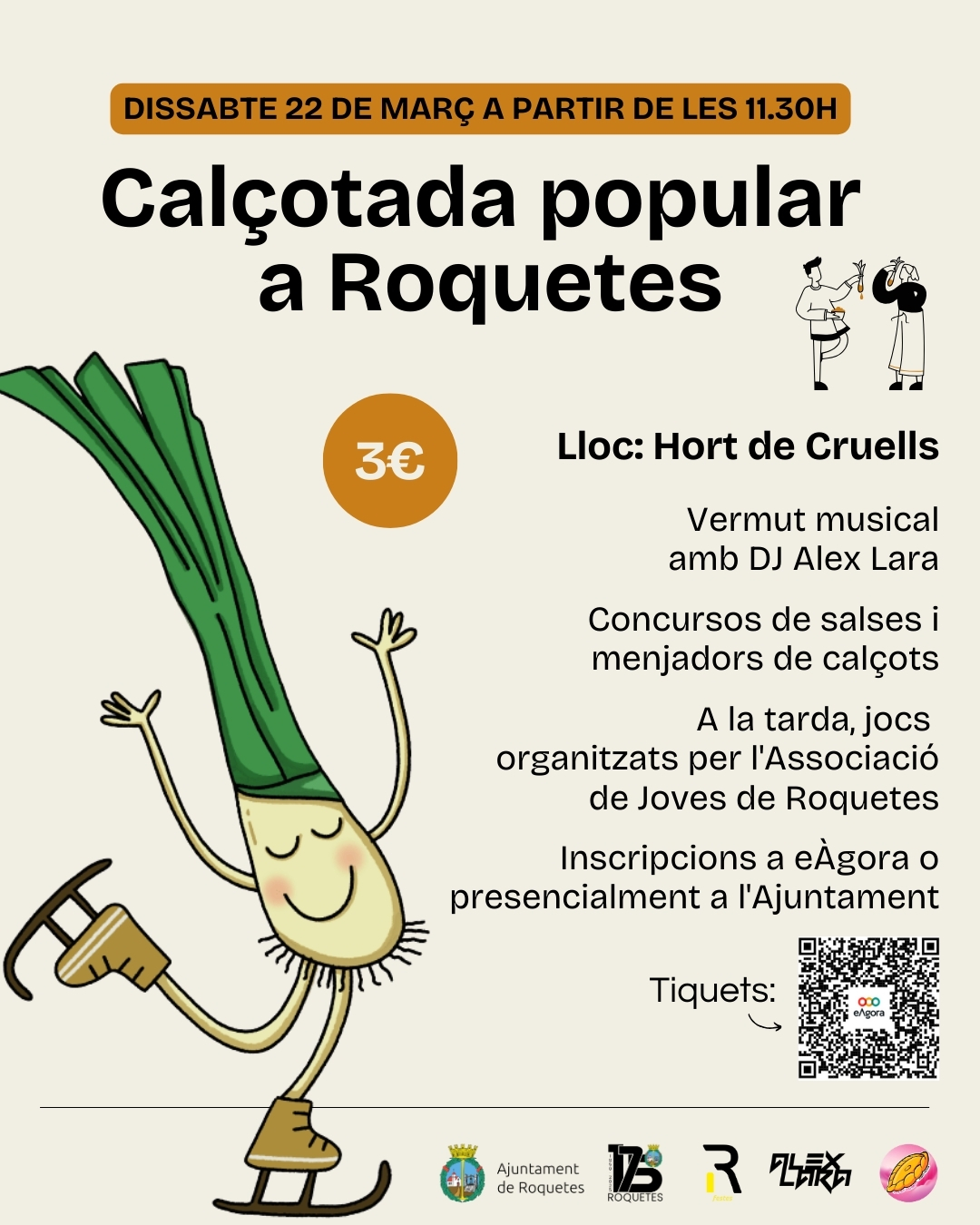 La jornada tindrà vermut musical amb DJ Alex Lara, així com concursos de salses i menjadors de calçots. A més, a la tarda s’organitzaran jocs per part de l’Associació de Joves de Roquetes, que asseguraran molta gresca entre les colles participants durant tot el dia.