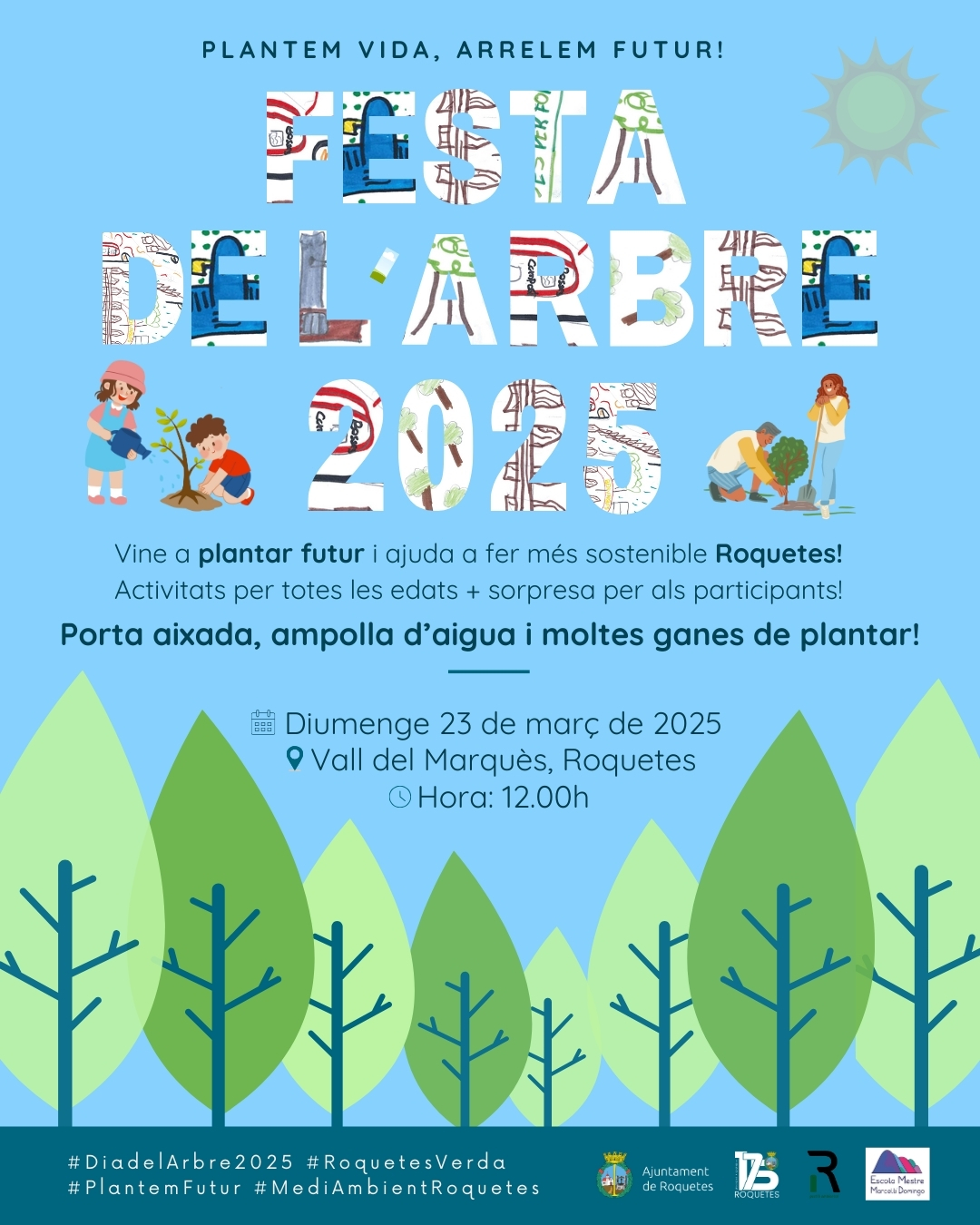 Conscienciació al voltant dels espais verds, i la preservació del medi natural. Roquetes viurà la Festa de l’Arbre 2025 el pròxim diumenge 23 de març, a partir de les 12.00 hores, a la Vall del Marquès. Els infants i famílies de la ciutat estan convidats a participar en un acte festiu de plantada i enjardinament, organitzat per l’Àrea de Gestió Ambiental i Eficiència Energètica de l’Ajuntament, i que contribuirà a fer més sostenible el municipi.