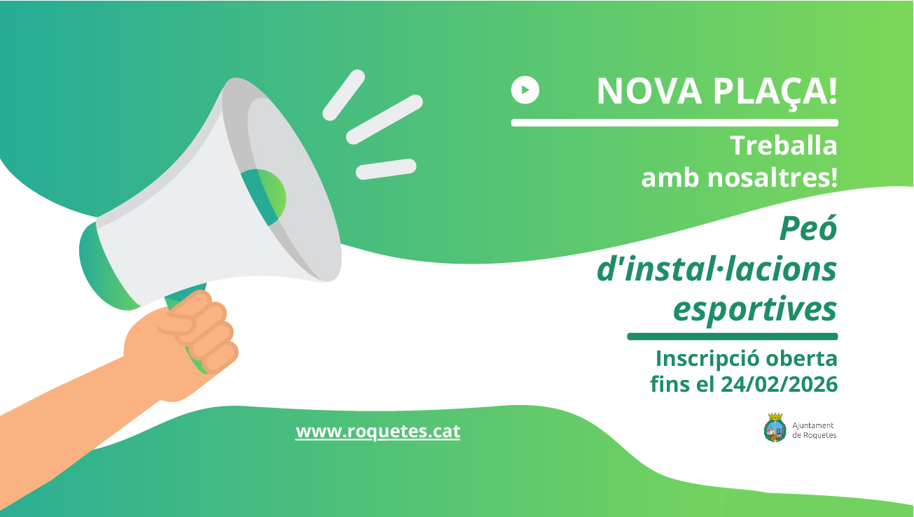 L’Ajuntament de Roquetes convoca una borsa de treball de peó d’instal·lacions esportives. El termini per la presentació de sol·licituds finalitza el pròxim 24 de febrer de 2026.