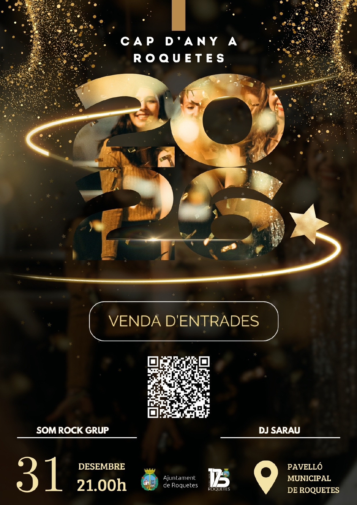 La festa més esperada, a casa! Roquetes viurà el proper 31 de desembre, a partir de les 21.00 hores, la revetlla de cap d’any 2026, amb una celebració per a grans i petits al Pavelló Municipal. La venda d’entrades ja es troba oberta, a través de la plataforma eÀgora, fins al pròxim dia 22, amb aforament limitat.