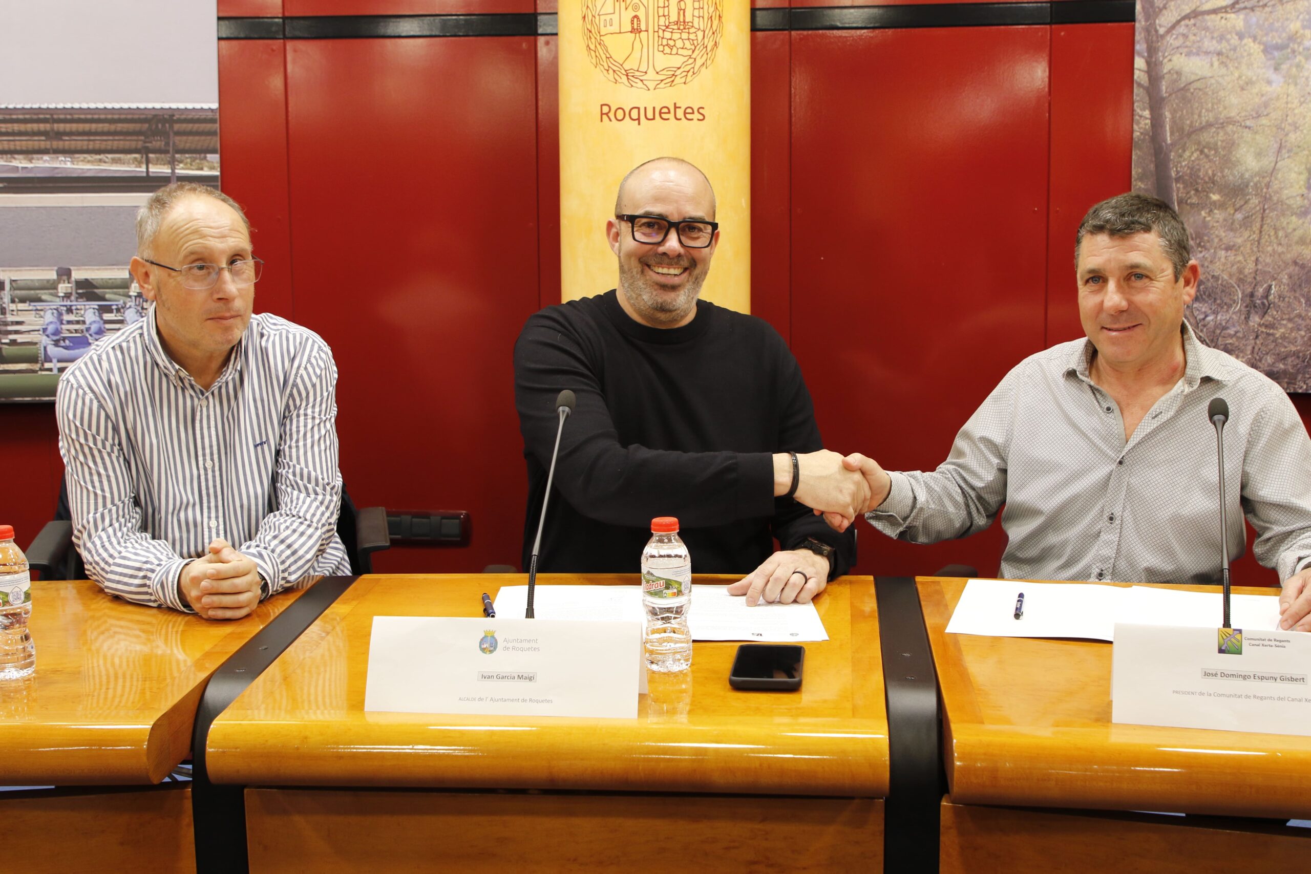 La signatura de l’acord ha tingut lloc aquest dimecres al Saló de Plens de l’Ajuntament de Roquetes, en un acte que ha comptat amb la participació de l’alcalde, Ivan Garcia, el regidor d’Agricultura i Ramaderia, Sisco Ollé, i el nou president de la Comunitat de Regants del Canal Xerta-Sénia, Domingo Espuny.
