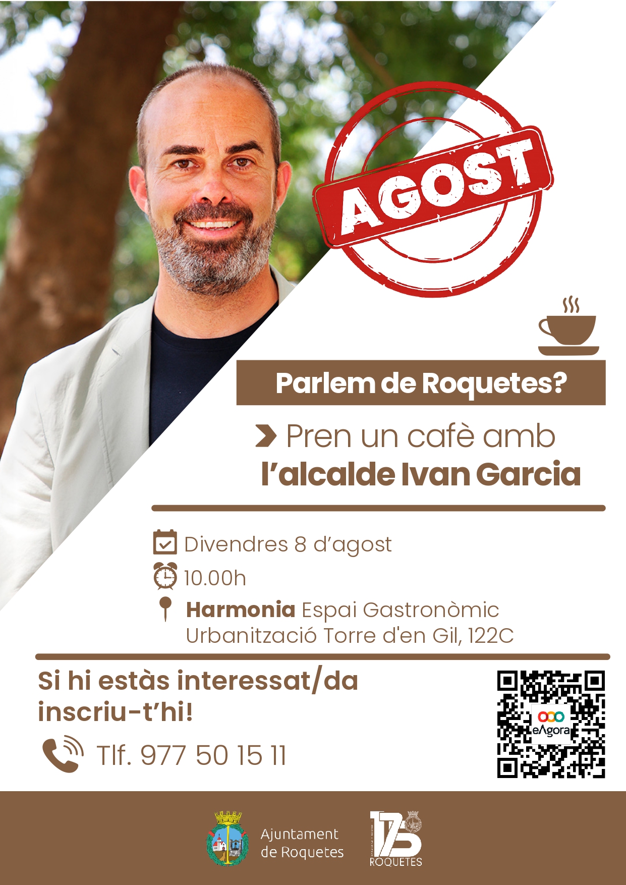 La proximitat amb la ciutadania no fa vacances d’estiu. La iniciativa ‘Cafè amb l’alcalde’ segueix recorrent els bars i establiments de la ciutat, amb la parada que realitzarà el pròxim divendres 8 d’agost, a les 10.00 hores, a l’Harmonia Espai Gastronòmic, del Centre Cívic de Roquetes. Aquest serà l’escenari de la següent trobada mensual del batlle de la ciutat, Ivan Garcia, amb els veïns i veïnes de la població, per tractar temes d’interès municipal de forma oberta i transparent.