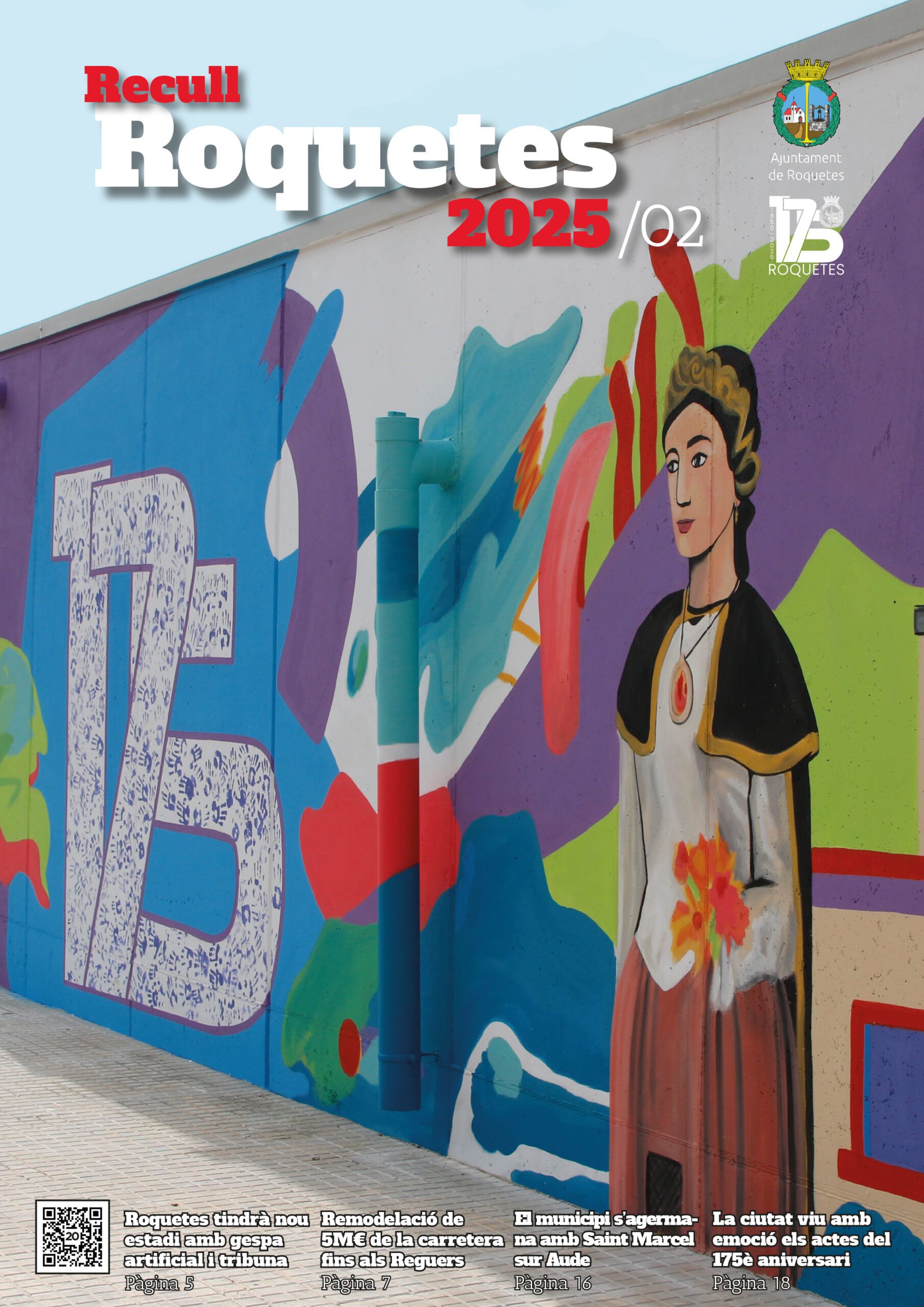 Aquesta edició del Recull Roquetes compta amb 36 pàgines de notícies i reportatges, on destaquen l’agermanament amb el poble francès de Saint Marcel sur Aude, el Roquetenc de l’Any, i imatges del nou mural exterior de les piscines, el concert de bandes o la recreació històrica ‘De Roquetes Vinc’.