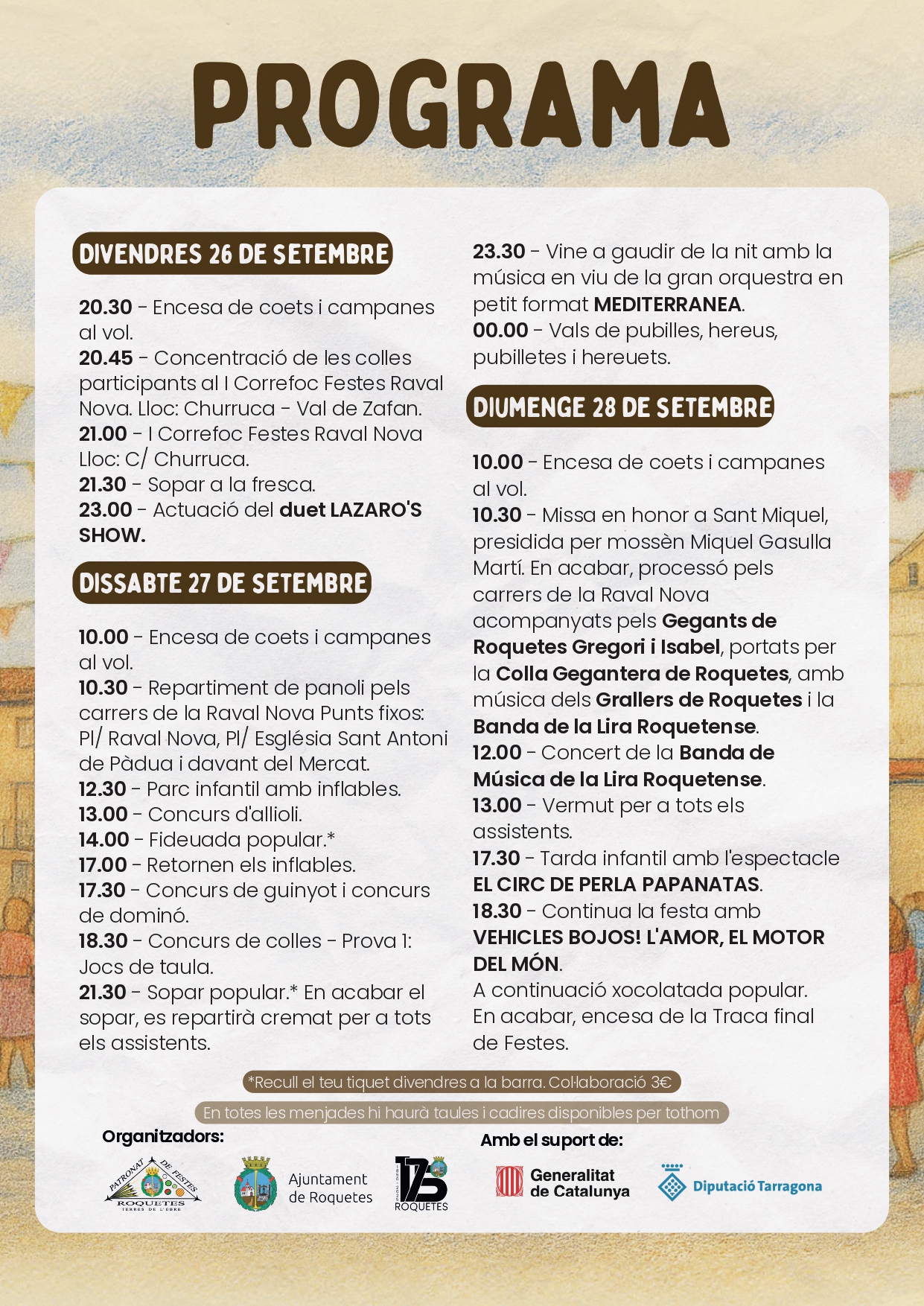 Consulta el programa complet d’activitats de les Festes de Sant Miquel 2025 de la Raval Nova fent clic AQUÍ, o bé a continuació: