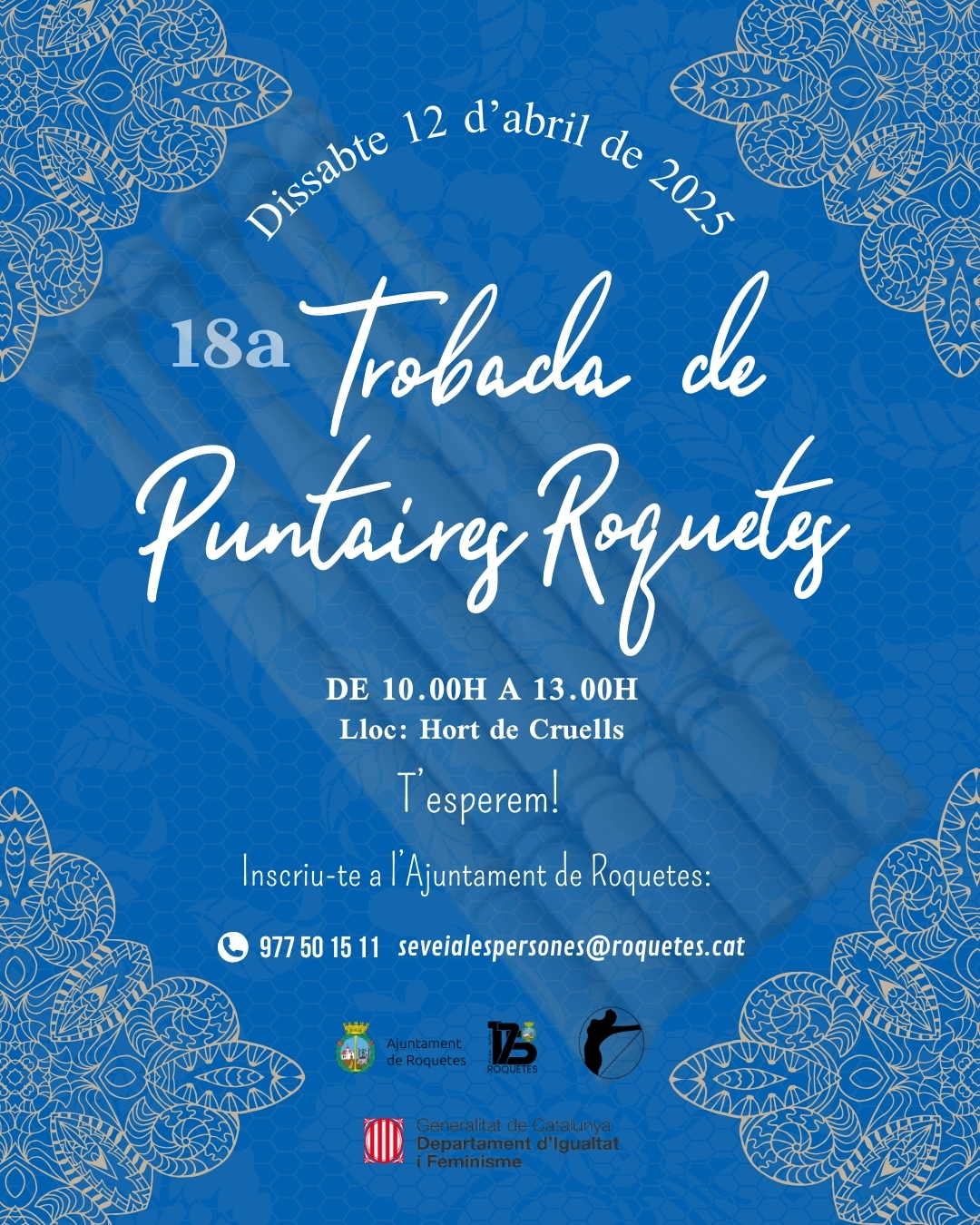 Per prendre part en la divuitena edició de la Trobada de Puntaires de Roquetes, les persones interessades poden inscriure’s trucant a les oficines de l’Ajuntament, en horari d’atenció al públic, de dilluns a divendres de 09.00 hores a 14.00 hores, o bé enviant un correu electrònic.