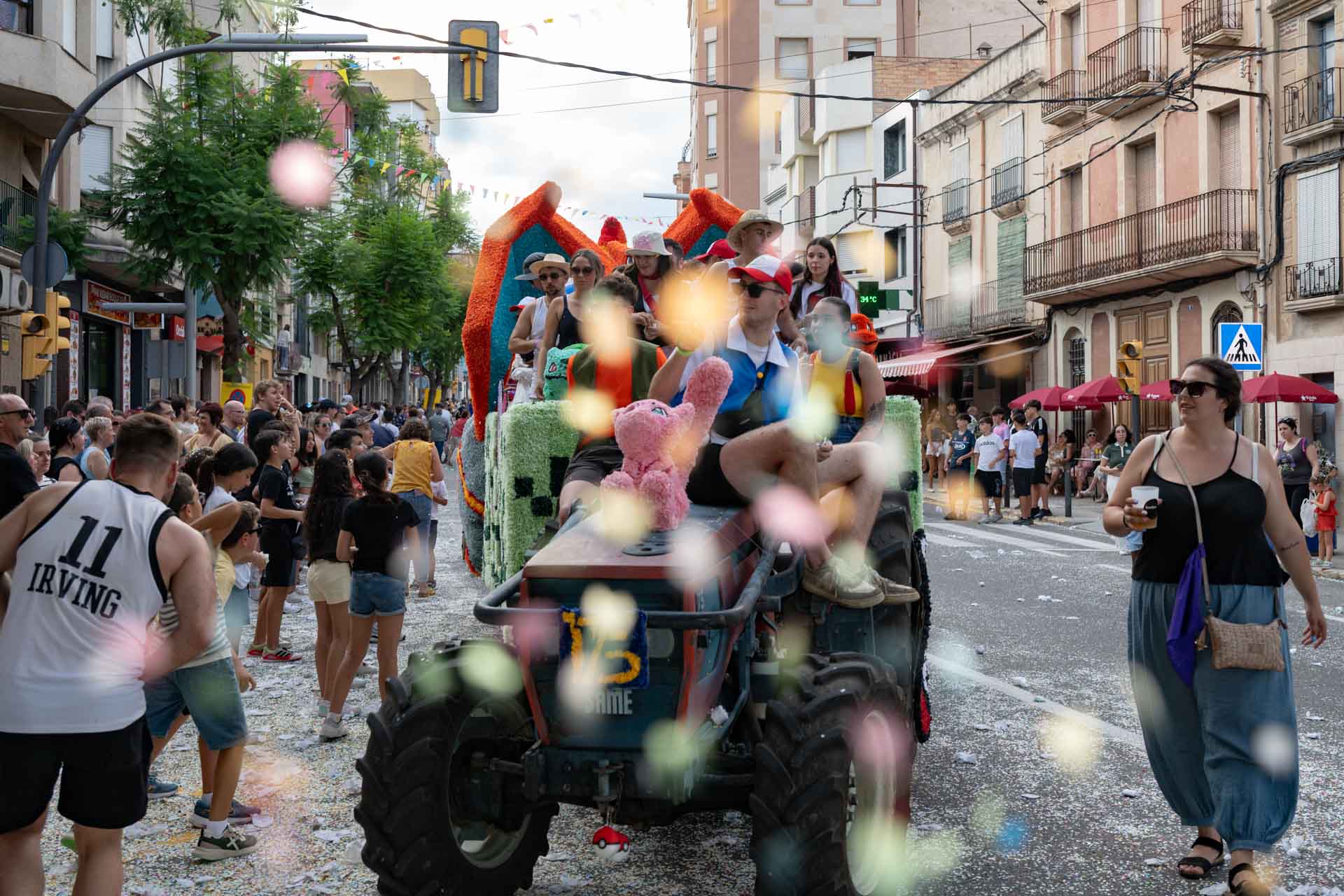 La festa més gamberra de l’estiu ebrenc lliura una batalla amb més de 50.000 boles de confeti, un nivell artístic extraordinari i 18 carrosses participants.