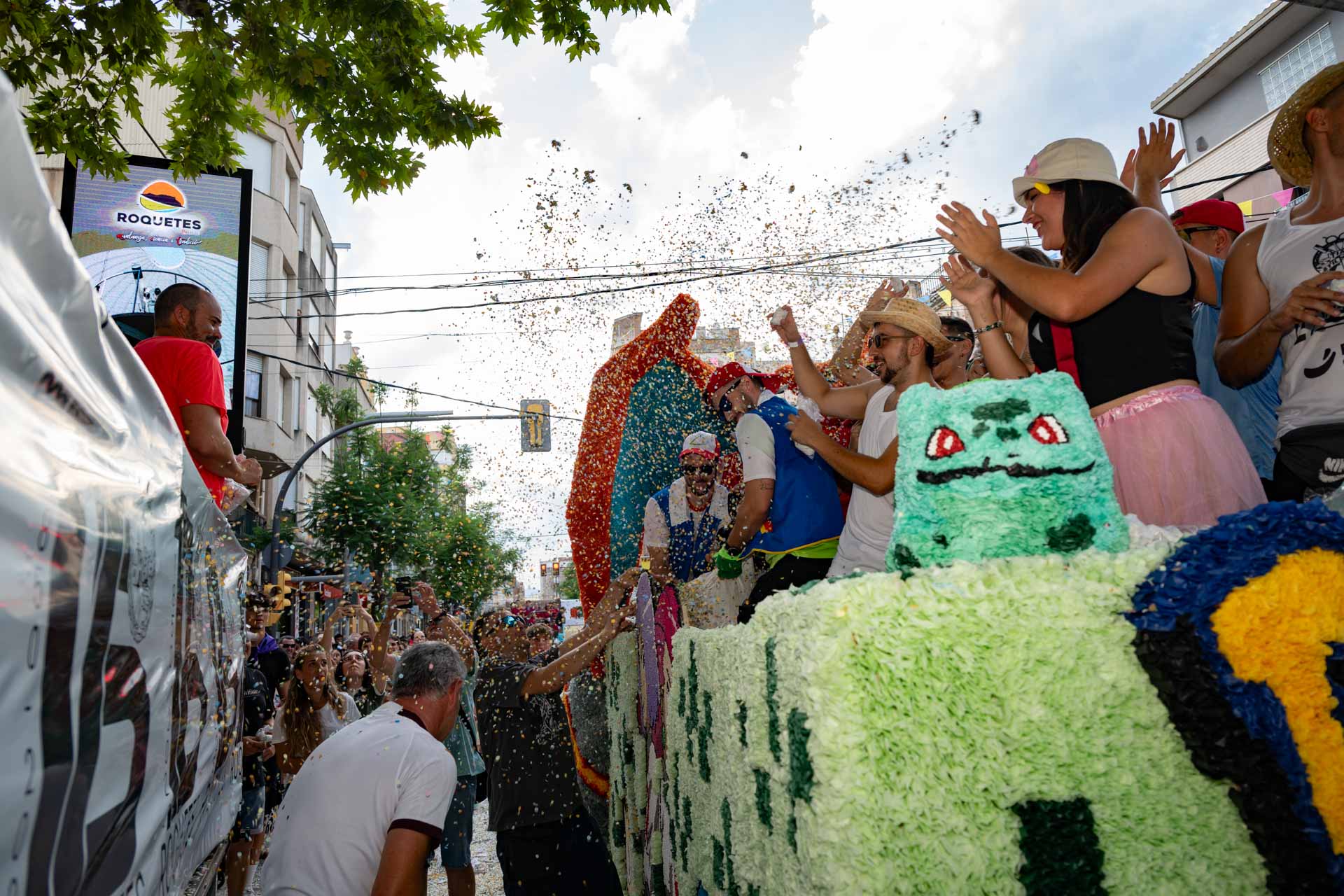 Explosió de colors, alegria i espectacularitat. El Gran Cosso-Iris de Roquetes s’ha confirmat aquest diumenge com el millor de Catalunya, amb tota una ciutat embogida al voltant de l’acte més emblemàtic de les seves Festes Majors. La festa més gamberra de l’estiu ebrenc ha lliurat una batalla amb més de 50.000 boles de confeti, un nivell artístic extraordinari i 18 carrosses participants que han omplert de gresca i xalera els carrers del municipi, enmig de milers de persones de totes les edats i vingudes d’arreu.