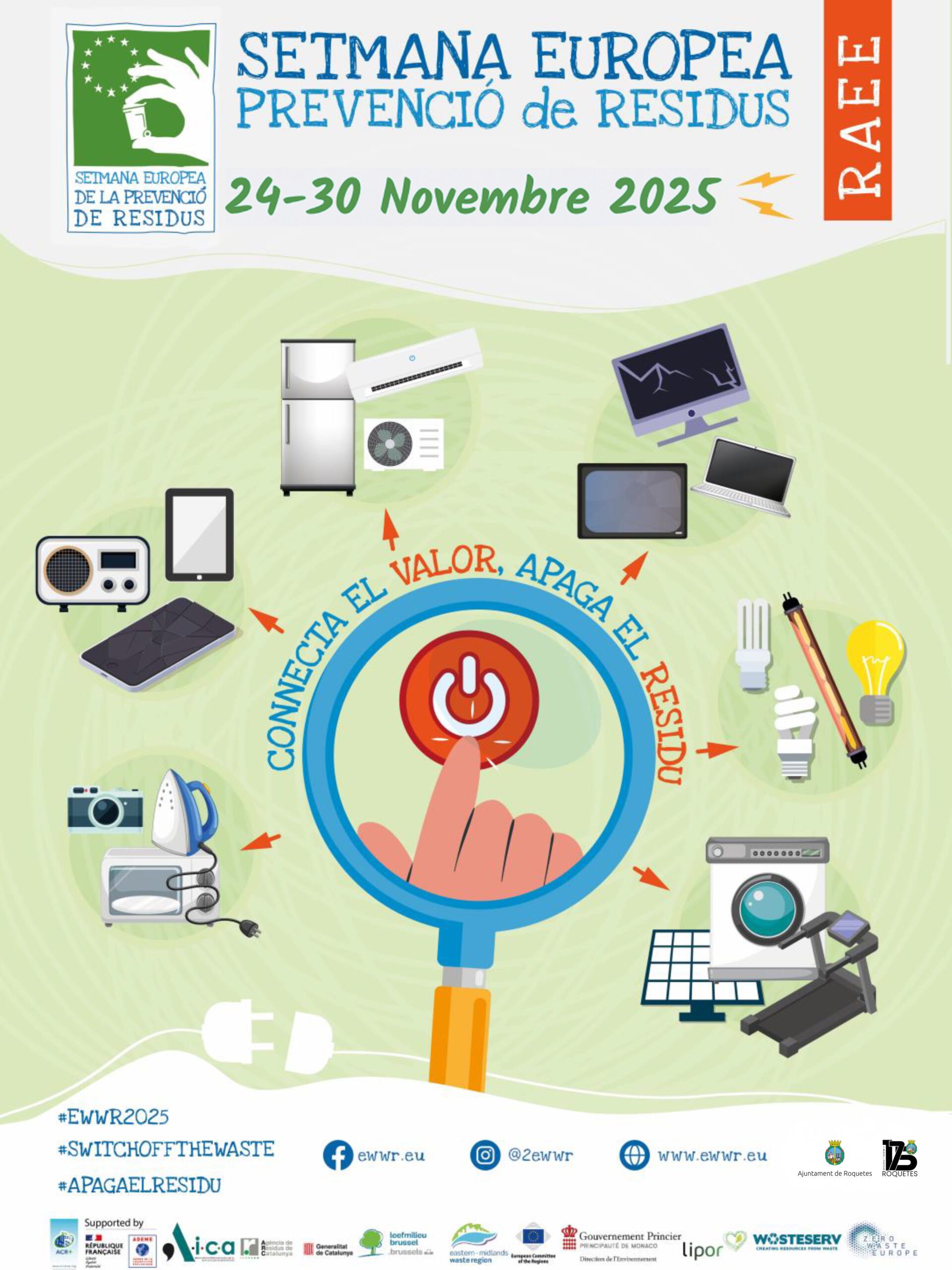 Avançar cap a un model de consum més responsable i sostenible. L’Ajuntament de Roquetes, amb la col·laboració de La Segona Volta, s’ha adherit a la Setmana Europea de la Prevenció de Residus, que tindrà lloc del 24 al 30 de novembre, i enguany es troba dedicada als aparells elèctrics i electrònics. Per aquest motiu, la ciutadania podrà portar els seus aparells en desús a les instal·lacions d’aquesta cooperativa local, per la seva reutilització, reparació o reciclatge.