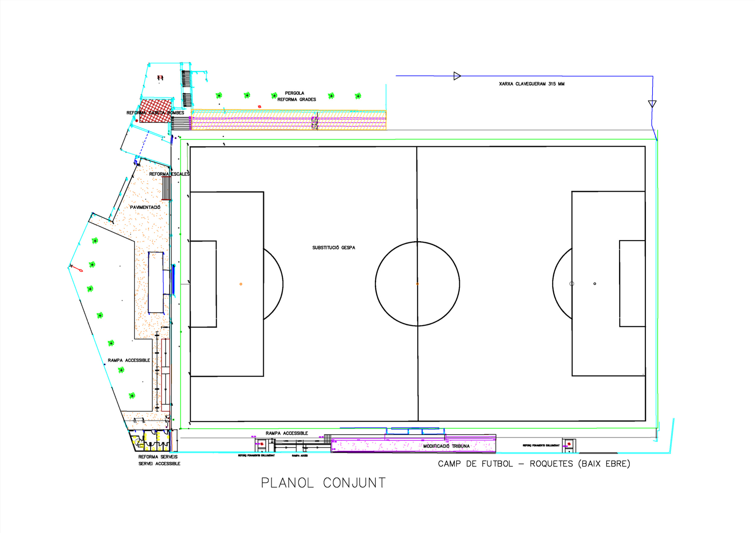 Per últim, es reformarà l’edifici dels dipòsits d’aigua, eliminant la diferència d’altura actual i aixecant-lo al mateix nivell que la resta del camp.